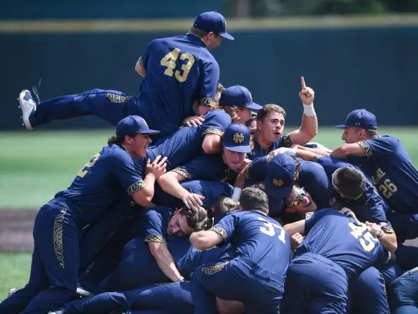 Notre Dame did what nine other teams have done; that alone is a reason to celebrate if you’re an Irish fan. Notre Dame took the punches this weekend. They didn’t shy away from them; they settled down and played Fighting Irish Baseball. What Notre Dame did this weekend in Knoxville will forever go down in the history of College Baseball as one of the most heroic victories in the history of the College Baseball NCAA Tournament. Whatever you believe about College Baseball, the baseball mojo was smiling down on the Irish today.
